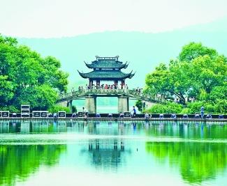 9月7日,游客在杭州西湖曲院風(fēng)荷景點(diǎn)參觀G20峰會文藝演出《最憶是杭州》的場地。光明圖片/視覺中國