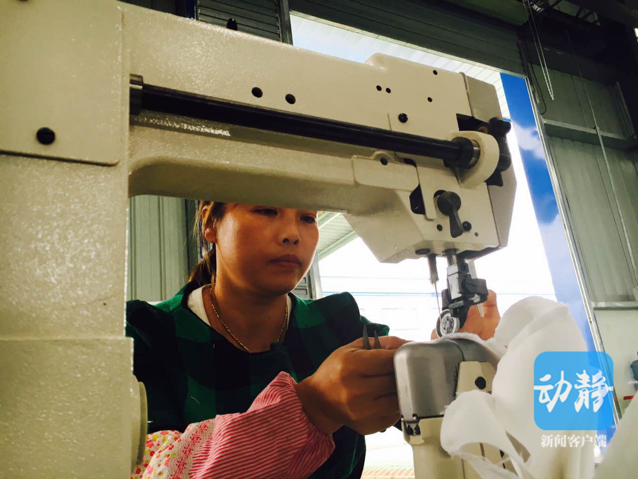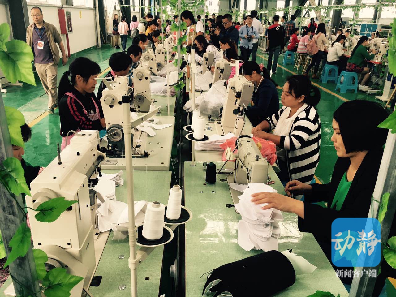 圖片說明:創(chuàng)業(yè)園里工人們正在流水線上制鞋