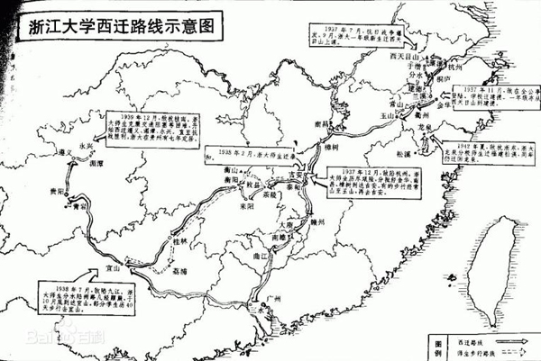 浙江大學(xué)西遷路線圖。(圖片取自網(wǎng)絡(luò))