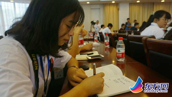 娃娃臉大眼睛的張琮脯是貴州人,今年20歲,就讀于貴州省警察學院大三年級,同時也是中國(貴州)高校傳媒聯(lián)盟的副主席。站在人群中,張琮脯就很顯眼,1米8幾的大高個笑起來憨憨的,非常有安全感。他會用自稱很“蹩腳”的英語和外國記者“手舞足蹈”地交流,把外國友人逗得哈哈大笑;也會在忽然下雨時將僅有的雨傘推給女同學,自己一個人走在路上;還會管中央網信辦的帶隊老師叫“王大姐”,與她暢聊自己關于新聞媒體報道中黨性和人民性的想法……大家對張琮脯都稱贊有加:“他非常非常非常會照顧人!”儼然,一個“暖男”擔當。