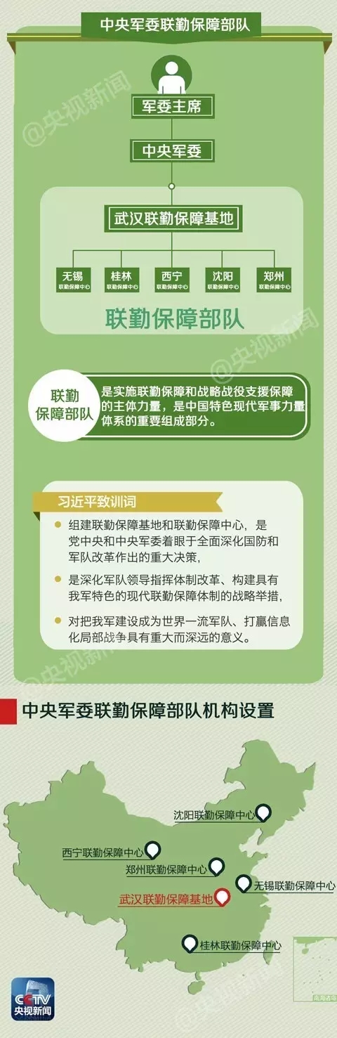 習(xí)主席指出,組建聯(lián)勤保障基地和聯(lián)勤保障中心,是黨中央和中央軍委著眼于全面深化國防和軍隊改革作出的重大決策,是深化軍隊領(lǐng)導(dǎo)指揮體制改革、構(gòu)建具有我軍特色的現(xiàn)代聯(lián)勤保障體制的戰(zhàn)略舉措,對把我軍建設(shè)成為世界一流軍隊、打贏現(xiàn)代化局部戰(zhàn)爭具有重大而深遠的意義。