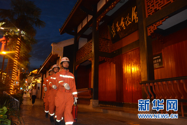 會(huì)址中隊(duì)消防員在遵義會(huì)議會(huì)址前巡邏。新華網(wǎng)發(fā)