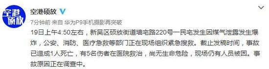 中新網(wǎng)9月19日電 據(jù)江蘇省無(wú)錫空港產(chǎn)業(yè)園區(qū)管理委員會(huì)(碩放街道辦事處)官方微博消息,19日上午4:50左右,江蘇省無(wú)錫市新吳區(qū)碩放街道墻宅路220號(hào)一民宅發(fā)生因煤氣泄露發(fā)生爆炸,公安、消防、醫(yī)療急救等部門(mén)正在現(xiàn)場(chǎng)組織緊急搜救。