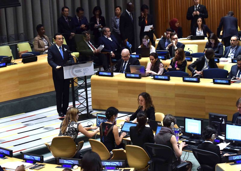 9月19日,李克強(qiáng)在紐約聯(lián)合國總部出席第71屆聯(lián)大解決難民和移民大規(guī)模流動(dòng)問題高級(jí)別會(huì)議并發(fā)言。