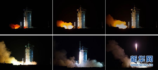 資料圖片:2016年8月16日1時(shí)40分,我國在酒泉衛(wèi)星發(fā)射中心用長征二號(hào)丁運(yùn)載火箭成功將世界首顆量子科學(xué)實(shí)驗(yàn)衛(wèi)星(簡稱“量子衛(wèi)星”)發(fā)射升空(拼版照片)。 新華社記者金立旺攝