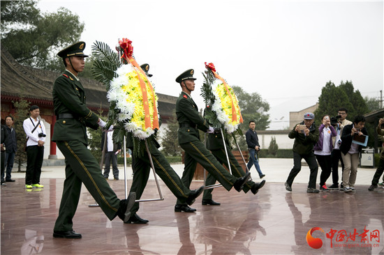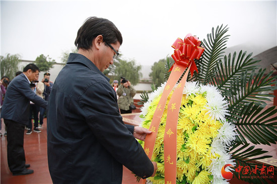 上午9時40分,敬獻(xiàn)花籃儀式正式開始。中央網(wǎng)信辦傳播局副局長唐建軍,平?jīng)鍪形N、宣傳部部長曹復(fù)興上前為花籃扶正緞帶,隨后全體人員為革命先輩行三鞠躬禮。儀式結(jié)束后,采訪團(tuán)參觀了解了毛澤東故居、紅軍樓、神馬救駕等展廳。