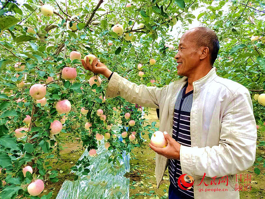 曾是紅軍長征中三大主力紅軍會師部隊聯絡地的靜寧現因為蘋果馳名中外。圖為果農楊道道正在采摘蘋果 郭頌霞 攝