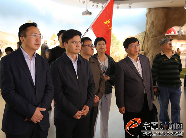 自治區(qū)黨委宣傳部副部長、網(wǎng)信辦主任徐賀(左一)一行參觀六盤山紅軍長征紀(jì)念館。