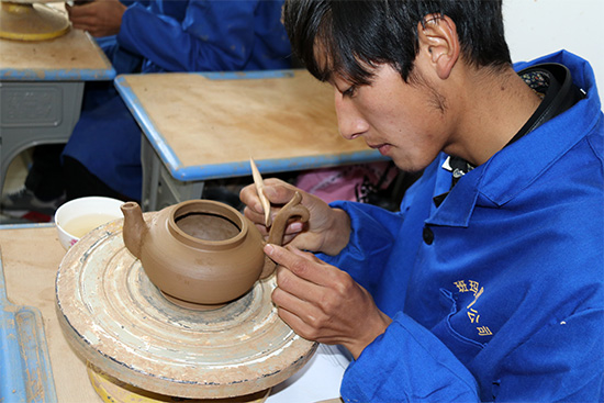 正在制作黑陶的藏族青年。