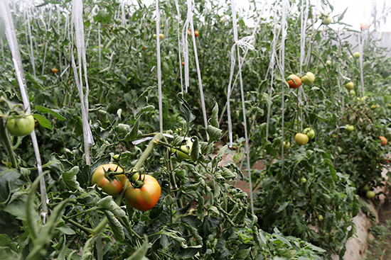 蔬菜大棚里快要成熟的番茄,