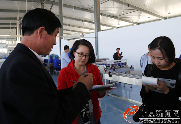 寧夏旺泉食品飲料有限公司總經(jīng)理黃思軍向采訪團(tuán)介紹情況