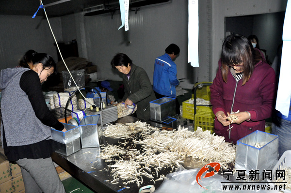 將南方的食用菌培育引進(jìn)到彭陽,是當(dāng)?shù)卣l(fā)展產(chǎn)業(yè)脫貧的創(chuàng)新之舉。在彭陽縣福泰菌業(yè)有限責(zé)任公司的分撿車間里,一座用杏鮑菇堆成的“小山”周圍,幾名工人正迅速地分撿裝袋,做真空處理后打包裝箱。據(jù)福泰公司經(jīng)理祁登榮介紹,目前企業(yè)培育食用菌類的生產(chǎn)技術(shù)已經(jīng)成熟,帶動周邊農(nóng)戶參與食用菌生產(chǎn),實(shí)現(xiàn)企業(yè)與農(nóng)戶雙贏是園區(qū)建設(shè)的最終目的。