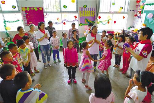 綦江區(qū)志愿者在東溪鎮(zhèn)柴壩中心小學(xué)和山區(qū)兒童互動游戲 攝/陳星宇