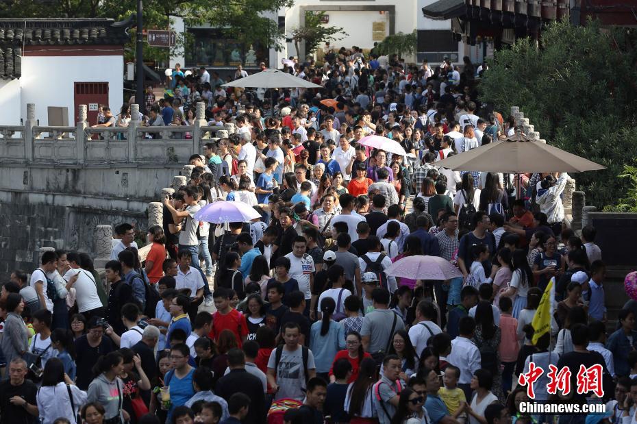 10月4日,中國(guó)國(guó)家旅游局發(fā)布的信息顯示,2016年國(guó)慶假期過半,經(jīng)綜合測(cè)算,前四天全國(guó)共接待游客4.15億人次,同比增長(zhǎng)13.8%,累計(jì)旅游收入3397.5億元,同比增長(zhǎng)15.1%。圖為10月3日,游客們?cè)谀暇┓蜃訌R景區(qū)內(nèi)游玩。 中新社記者 泱波 攝