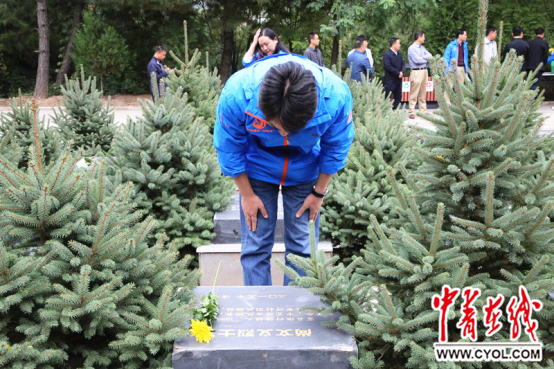 在直羅鎮(zhèn)烈士陵園,采訪團(tuán)成員為革命烈士敬獻(xiàn)鮮花并鞠躬 中國青年報(bào)·中青在線記者 劉攀 攝