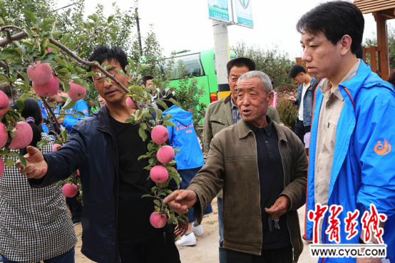 采訪團(tuán)記者向當(dāng)?shù)卮迕窳私馓O果種植情況 中國青年報(bào)·中青在線記者 劉攀 攝