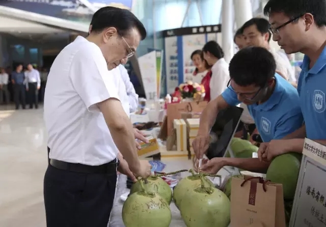 李克強(qiáng)3月22日在三亞市民游客中心考察海南創(chuàng)意旅游紀(jì)念品展區(qū)時(shí),看到一些包括大學(xué)生在內(nèi)的年輕人正在展示用當(dāng)?shù)剞r(nóng)產(chǎn)品和特色原材料制作的旅游紀(jì)念品?偫矸Q贊他們富有創(chuàng)意,小商品可以打造未來(lái)的大希望。他強(qiáng)調(diào),發(fā)展新經(jīng)濟(jì)、培育新動(dòng)能是遵循新發(fā)展理念、適應(yīng)經(jīng)濟(jì)發(fā)展新常態(tài)的必然選擇,也可以為改造提升傳統(tǒng)動(dòng)能創(chuàng)造必要和有利條件。