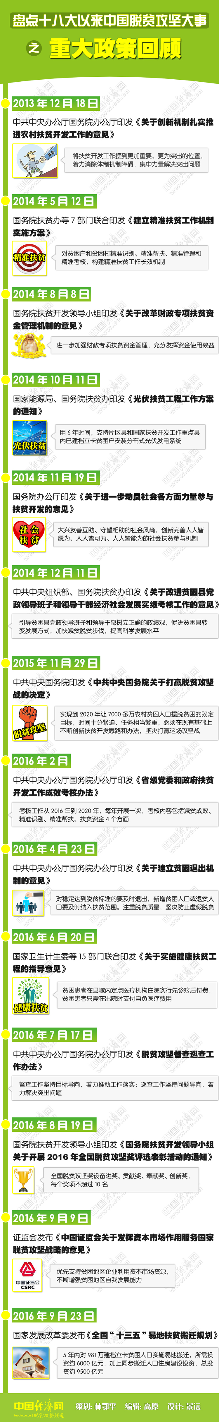 中國經(jīng)濟(jì)網(wǎng)策劃制作系列圖解“盤點(diǎn)十八大以來中國脫貧攻堅大事”!按笫隆狈秩糠郑旱谝徊糠帧翱倳浾f了啥”;第二部分“標(biāo)桿活動回眸”;第三部分為“重大政策回顧”。今日推出《盤點(diǎn)十八大以來中國脫貧攻堅大事之重大政策回顧》。