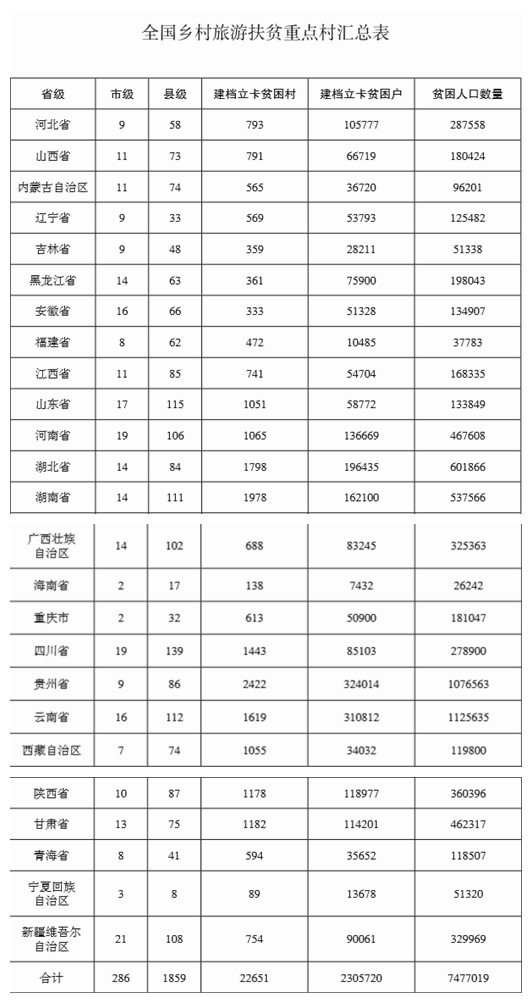 4、萬企萬村幫扶專項行動。組織動員全國1萬家旅游企業(yè)、賓館飯店、景區(qū)景點、旅游規(guī)劃設計單位、旅游院校等單位,對鄉(xiāng)村旅游扶貧重點村進行幫扶脫貧。采取安置就業(yè)、項目開發(fā)、輸送客源、定點采購、指導培訓等多種方式幫助鄉(xiāng)村旅游扶貧重點村發(fā)展旅游,通過5年時間解決100萬左右貧困人口的脫貧。