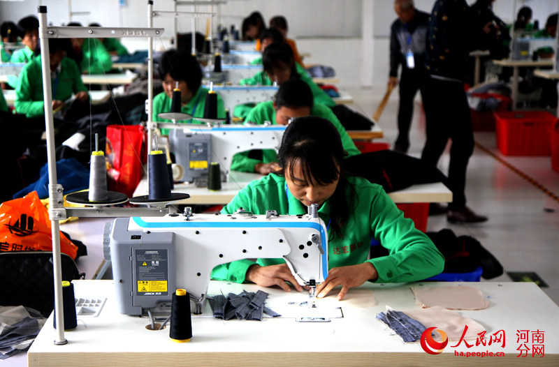 董作琴長期患有糖尿病,無法“干重活”。兒子外出打工、女兒幼小,全家生活全靠3畝稻田和丈夫打零工收入維持,十分困難。她口中的“基地”就是桐柏縣精準扶貧就業(yè)基地。如今在桐柏縣每個鄉(xiāng)鎮(zhèn)都能看到這樣的扶貧基地,它們建在貧困村,吸納貧困婦女在家門口就業(yè),走上致富路。