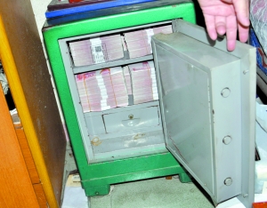 警方在東莞破獲一宗地下錢莊案時(shí),從一個(gè)保險(xiǎn)箱中繳獲滿滿一箱涉案現(xiàn)金。