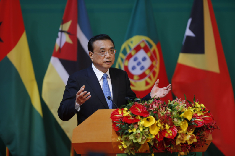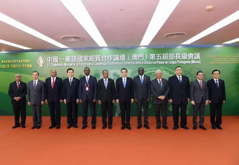國(guó)務(wù)院總理李克強(qiáng)11日上午在澳門出席中國(guó)-葡語(yǔ)國(guó)家經(jīng)貿(mào)合作論壇第五屆部長(zhǎng)級(jí)會(huì)議開(kāi)幕式并發(fā)表主旨演講。佛得角總理席爾瓦、幾內(nèi)亞比紹總理巴西羅·賈、莫桑比克總理多羅薩里奧、葡萄牙總理科斯塔以及安哥拉、巴西、東帝汶等國(guó)政府代表與會(huì)并講話。