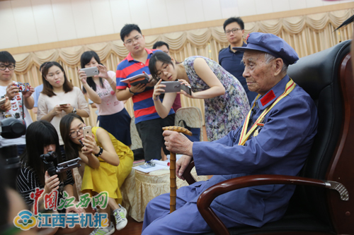“王老,重陽節(jié)快樂,祝您健康長壽!”10月9日,中國江西網(wǎng)記者在贛州看望百歲老紅軍王承登并送上親切的問候和祝福!捌綍r胃口怎樣?身體如何?”記者與王老拉起家常,詳細(xì)了解他的身體和起居情況。