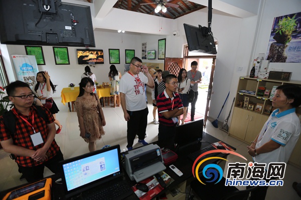 網(wǎng)媒行一行人參觀互聯(lián)網(wǎng)農(nóng)業(yè)小鎮(zhèn)美社村參觀采訪。南海網(wǎng)記者 劉洋攝