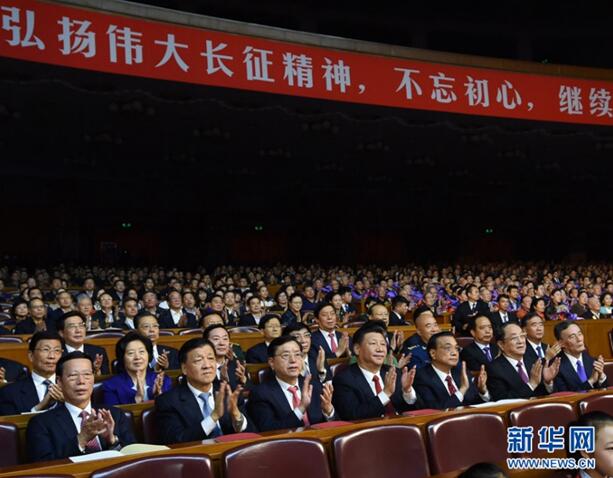 2016年10月19日,紀(jì)念紅軍長(zhǎng)征勝利80周年文藝晚會(huì)《永遠(yuǎn)的長(zhǎng)征》在北京人民大會(huì)堂舉行。習(xí)近平、李克強(qiáng)、張德江、俞正聲、劉云山、王岐山、張高麗等黨和國家領(lǐng)導(dǎo)人,與首都3000多名群眾共同觀看演出。新華社記者 饒愛民 攝