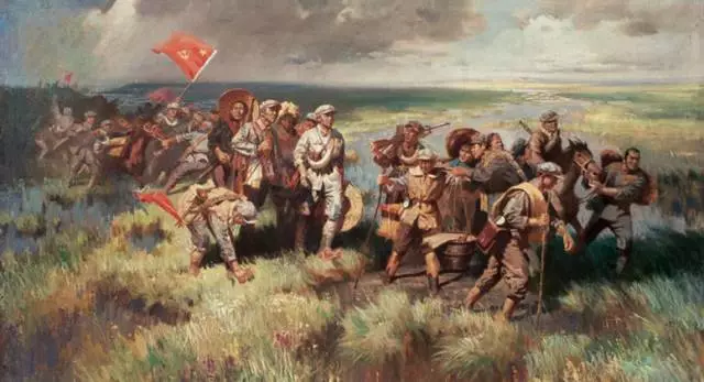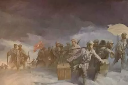 哪怕以皮帶充饑,戰(zhàn)士們?nèi)员3种锩鼧?lè)觀主義,終于挺進(jìn)陜北,勝利會(huì)師。