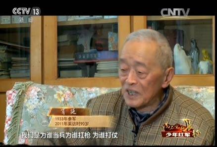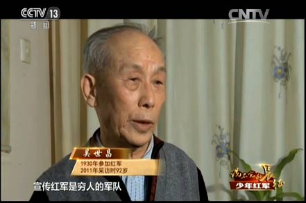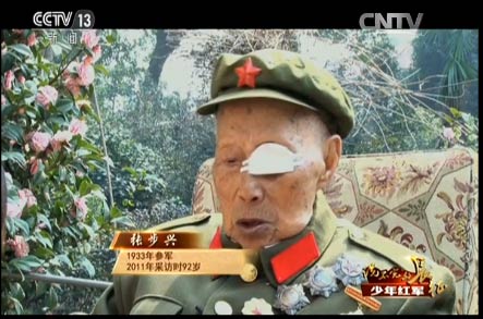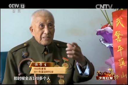 王述文的參軍之路就沒有那么順利了。他八歲參加兒童團(tuán),拿著紅纓槍站崗放哨,跟著自衛(wèi)隊(duì)打土豪、分田地,1933年,紅軍到了王述文的家鄉(xiāng),四川巴中,這一年他九歲。他決定參加紅軍,可沒成想,人家嫌他小,不要。當(dāng)時(shí)王述文覺得只有參加紅軍才有出路,所以就哭、鬧。面對這個又哭又鬧的孩子,紅軍沒有辦法,只能暫時(shí)讓他跟著部隊(duì)。有一天走了120里路,到晚上點(diǎn)名,點(diǎn)到最后連長也沒點(diǎn)王述文的名字,王述文就“哼”地一聲,連長這次叫了他的名字。