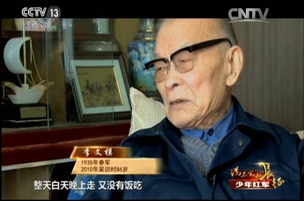 一聲槍響,對面的敵人應(yīng)聲倒地。小鬼們面臨的考驗(yàn)不僅僅是戰(zhàn)斗。長征開始的時(shí)候,李文模和張敏只有10歲,張步興14歲。長征路上,吃的是糙米,喝的是水溝里的臟水,行軍時(shí)候小孩就是跟著跑。當(dāng)時(shí)的紅小鬼李文模說,行軍時(shí)槍炮聲不斷。頭兩天感覺很害怕,時(shí)間一長慣了也就無所謂了。