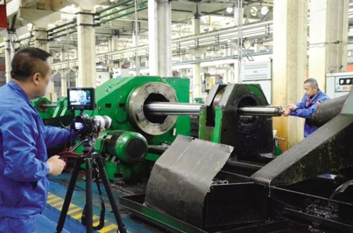 戎鵬強(qiáng)從進(jìn)廠第一天開始就把技能提升作為目標(biāo)。通過(guò)幾十年如一日的摸索實(shí)踐,他總結(jié)了“摸、聽、看、量”四字訣。所謂“摸”,主要是摸刀桿,根據(jù)摸刀桿判斷刀在行走時(shí)的狀態(tài);“聽”就是聽機(jī)床發(fā)出的聲音和硫化油流動(dòng)的聲音,判斷機(jī)床運(yùn)轉(zhuǎn)是否正常;“看”是要看鐵屑的形狀和電流表的讀數(shù);“量”是測(cè)量刀桿每分鐘行走的距離和內(nèi)控的尺寸,F(xiàn)在的戎鵬強(qiáng)練就了以“手”當(dāng)“眼”的絕活兒,只要用手握住刀桿,通過(guò)感受刀頭的震動(dòng),他就能對(duì)加工進(jìn)度做到心中有數(shù)。