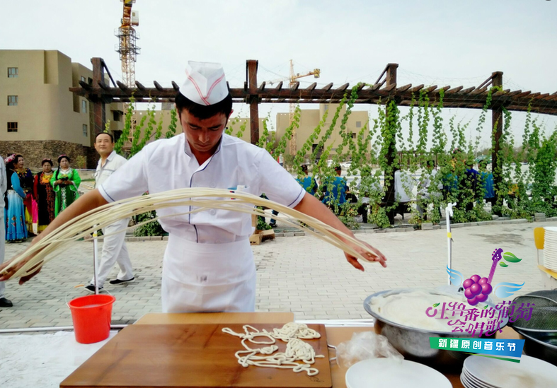 近日,由國家互聯(lián)網(wǎng)信息辦公室指導(dǎo),新疆互聯(lián)網(wǎng)信息辦公室和吐魯番市黨委宣傳部共同主辦的“吐魯番的葡萄會唱歌”大型網(wǎng)絡(luò)文化活動來到吐魯番市托克遜縣。托克遜縣是古絲綢之路上的著名驛站,南來北往的人流、車流途經(jīng)匯聚于此休憩、用餐,而食客們多以食用當(dāng)?shù)孛朗惩锌诉d拌面為主。