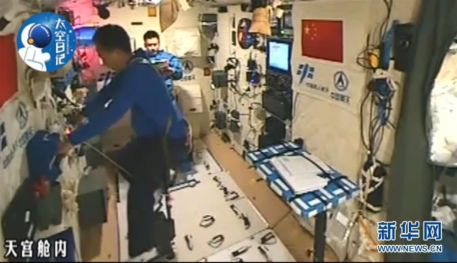11月7日,新華社太空特約記者、航天員陳冬在天宮二號介紹航天員在太空中怎樣鍛煉身體,與地面健身相比有哪些不一樣的感覺。這是航天員在天宮艙內(nèi)鍛煉。新華社發(fā)(中國航天員中心提供)圖片來源:新華網(wǎng)