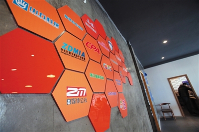 2015年12月8日,烏鎮(zhèn)鎮(zhèn)金融咖啡館內(nèi)的一面墻上,貼滿了互聯(lián)網(wǎng)企業(yè)機(jī)構(gòu)的標(biāo)志。新京報(bào)記者 李冬 攝
