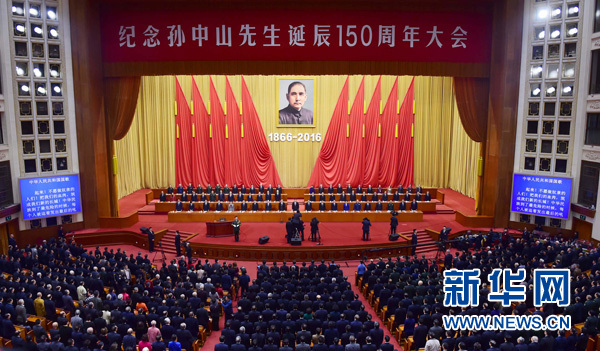 11月11日,紀(jì)念孫中山先生誕辰150周年大會(huì)在北京人民大會(huì)堂隆重舉行。新華社記者 張鐸 攝