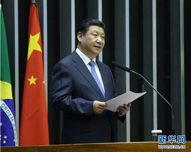 圖為:2014年7月16日,國(guó)家主席習(xí)近平在巴西國(guó)會(huì)發(fā)表《弘揚(yáng)傳統(tǒng)友好 共譜合作新篇》的演講。