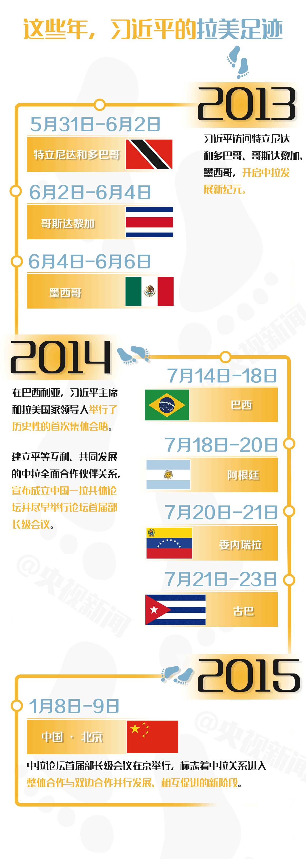 習(xí)主席這次訪問(wèn)的三國(guó)都是拉美地區(qū)具有重要代表性的國(guó)家,與中國(guó)傳統(tǒng)友誼深厚,合作基礎(chǔ)良好。此訪,不僅將鞏固中國(guó)同三國(guó)的傳統(tǒng)友好關(guān)系,全面提升雙邊政治互信和務(wù)實(shí)合作水平,也將推動(dòng)中拉全面合作伙伴關(guān)系持續(xù)深入發(fā)展。