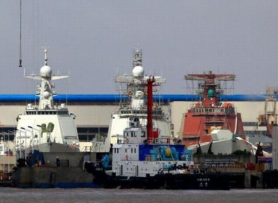 據(jù)臺(tái)灣東森新聞云11月16日?qǐng)?bào)道,據(jù)拍攝的圖片顯示,大連造船廠內(nèi)有3艘052D驅(qū)逐艦同時(shí)開(kāi)工建造,而已刷上舷號(hào)117的艦艇為大陸第5艘該型驅(qū)逐艦“西寧”艦。