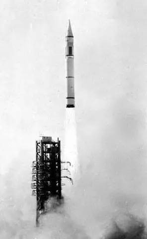 1980年5月18日至21日,中國向太平洋海域發(fā)射第一枚遠(yuǎn)程運(yùn)載火箭獲得圓滿成功。 圖為運(yùn)載火箭點(diǎn)火起飛。