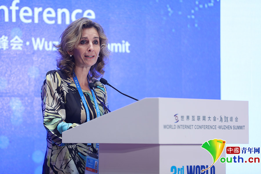 西班牙電信數(shù)字化教育公司首席執(zhí)行官卡羅琳娜發(fā)言。中國青年網(wǎng)記者 張炎良 攝