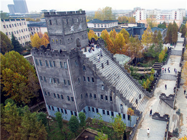 2016年11月26日,湖北省武漢市,因“校園長(zhǎng)城”引發(fā)網(wǎng)友熱議武漢生物工程學(xué)院。去年學(xué)校建設(shè)的長(zhǎng)城形建筑,總投資達(dá)400萬(wàn)元,目的是為了...