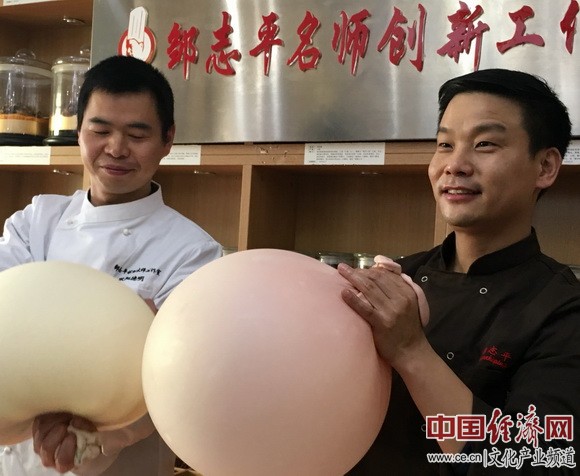 鄒志平師徒一起吹面球 中國(guó)經(jīng)濟(jì)網(wǎng)記者魏金金/攝