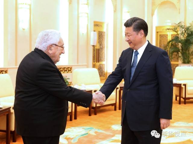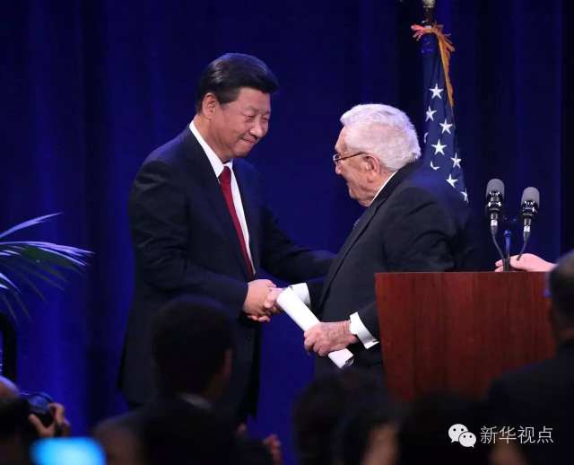 2015年9月,習(xí)近平應(yīng)邀訪問美國。在華盛頓州當(dāng)?shù)卣兔绹押脠F(tuán)體舉行的聯(lián)合歡迎宴會上,習(xí)近平在演講開始時專門對基辛格此前的發(fā)言表示感謝:“基辛格博士總能說出一些新穎的觀點(diǎn),他的介紹讓我對自己也有了一個新的認(rèn)識角度!
