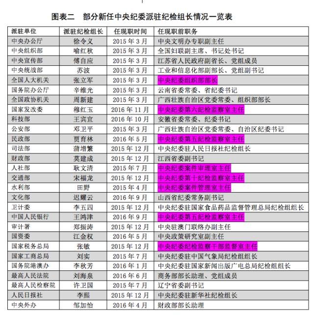 說(shuō)到這里,可以再來(lái)看一下2015年3月以來(lái),新任的中央紀(jì)委派駐紀(jì)檢組組長(zhǎng)的情況。(詳見圖表二)