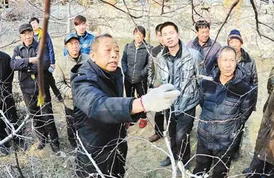 李保國在河北省內(nèi)丘縣崗底村向村民講解果樹修剪知識。新華社記者 朱旭東攝