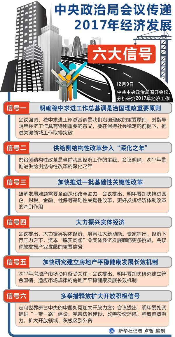 新華社北京12月9日電題:中央政治局會議傳遞2017年經(jīng)濟發(fā)展六大信號
