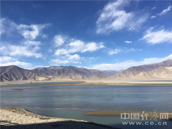 冬日藍(lán)天白云映襯下的雅魯藏布江。 中國經(jīng)濟(jì)網(wǎng)記者李婧 攝。