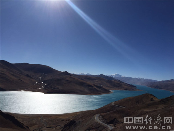 湖面海拔超過4400米的羊卓雍錯(cuò)湖。 中國經(jīng)濟(jì)網(wǎng)記者李婧 攝。